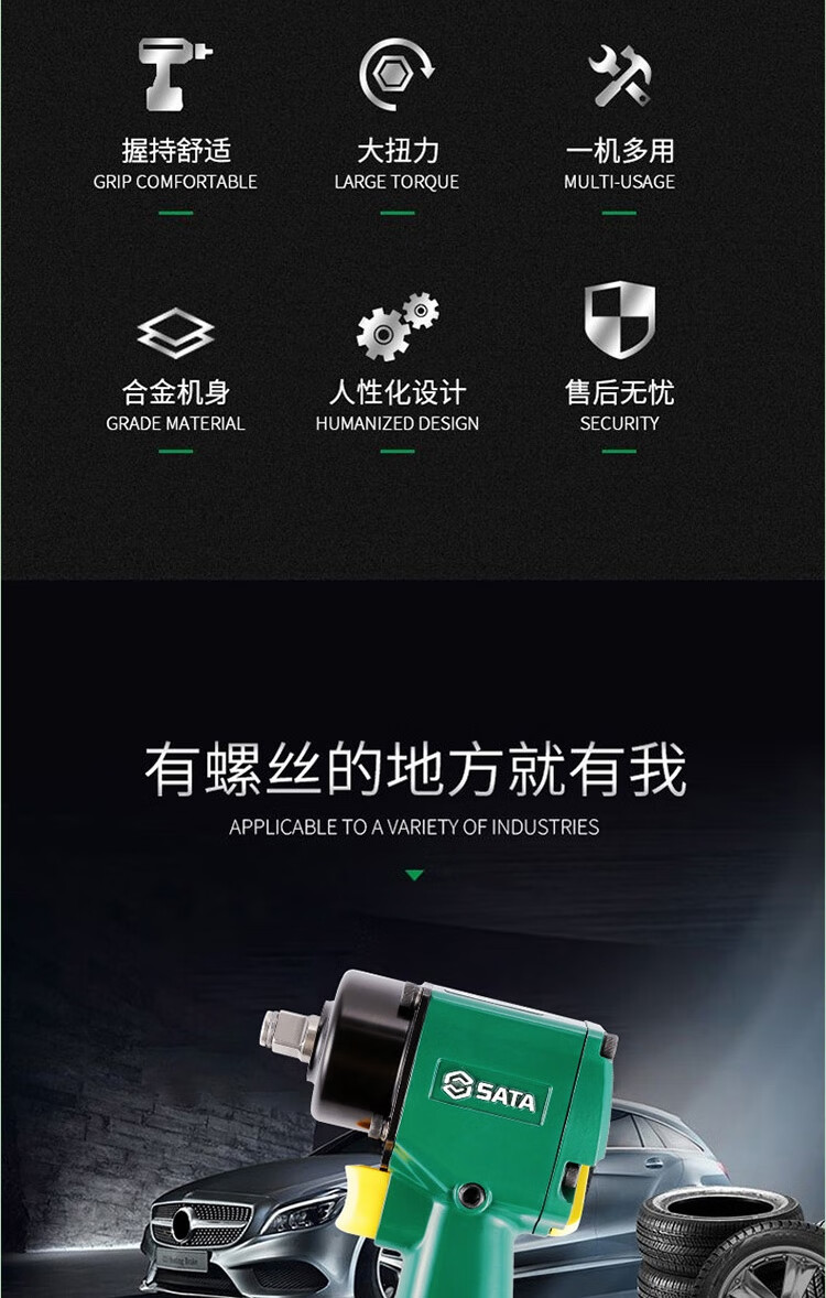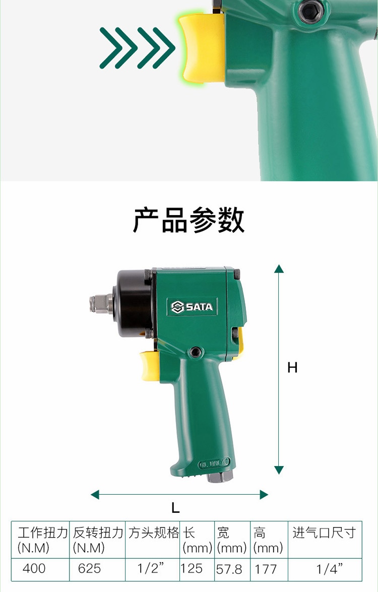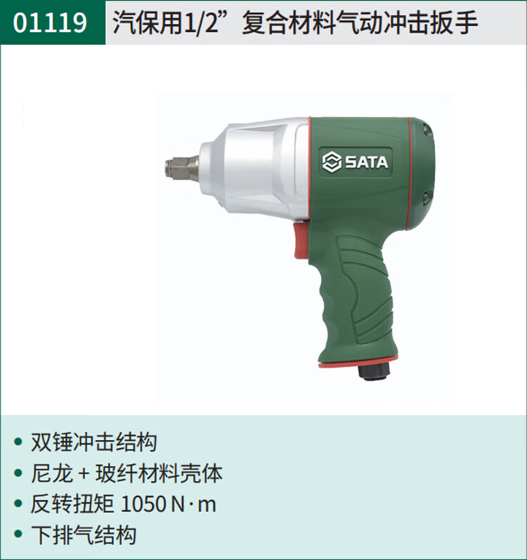 世达(SATA)01111/01118/01119 汽保专用气动冲击扳手 定制 01119 汽保专用1/2”复合材料冲击扳手